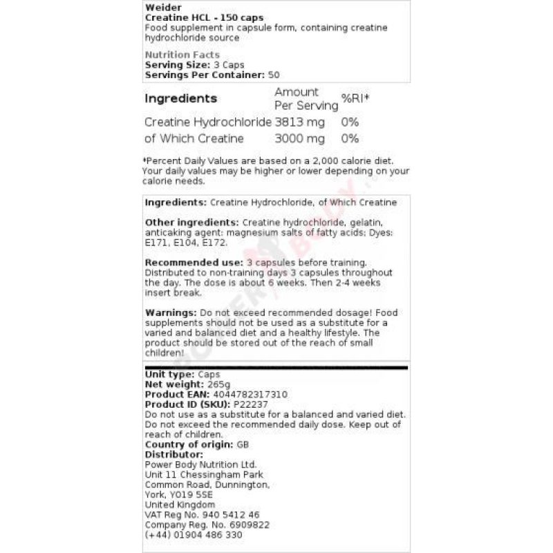 - Weider Creatine HCL Weider